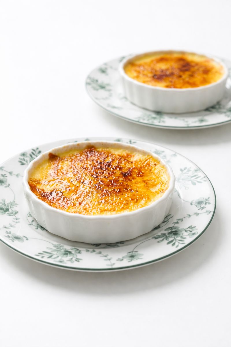 Crème brûlée soyeuse avec croquant de sucre caramélisé.